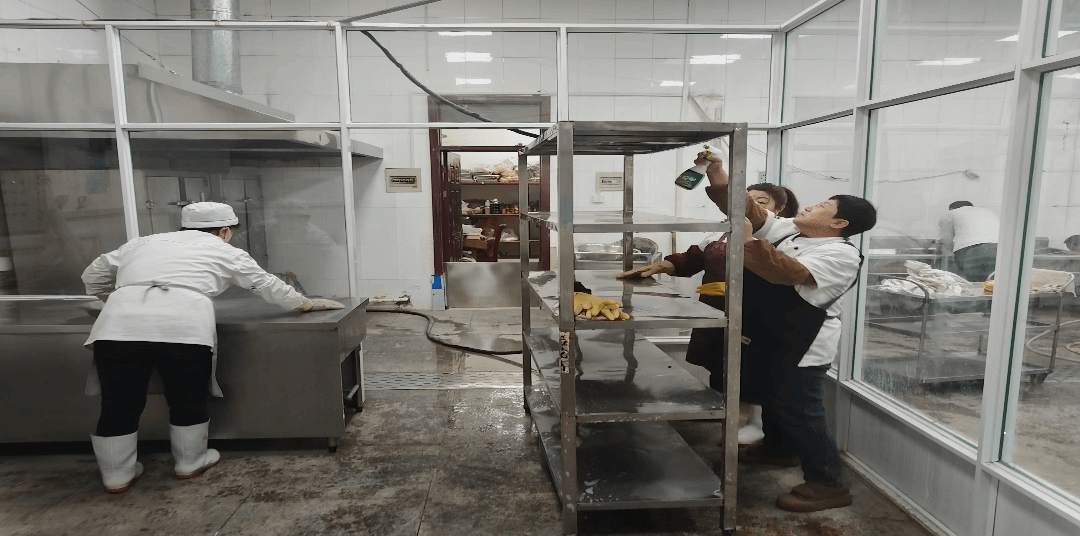 食堂是校园防控的关键区域。总务处近期开展了食堂卫生强化行动,组织全体员工对就餐区、后厨操作区、储藏区等进行彻底清扫和消毒。尤其对师生频繁接触的桌椅、地面,以及厨具、灶具、冷藏设备等,进行无死角清洗和消毒处理。同时,进一步严格落实食品加工操作规范,执行生熟分开、餐具高温消毒制度,切实杜绝交叉污染风险,确保每一环节均达到防疫要求。